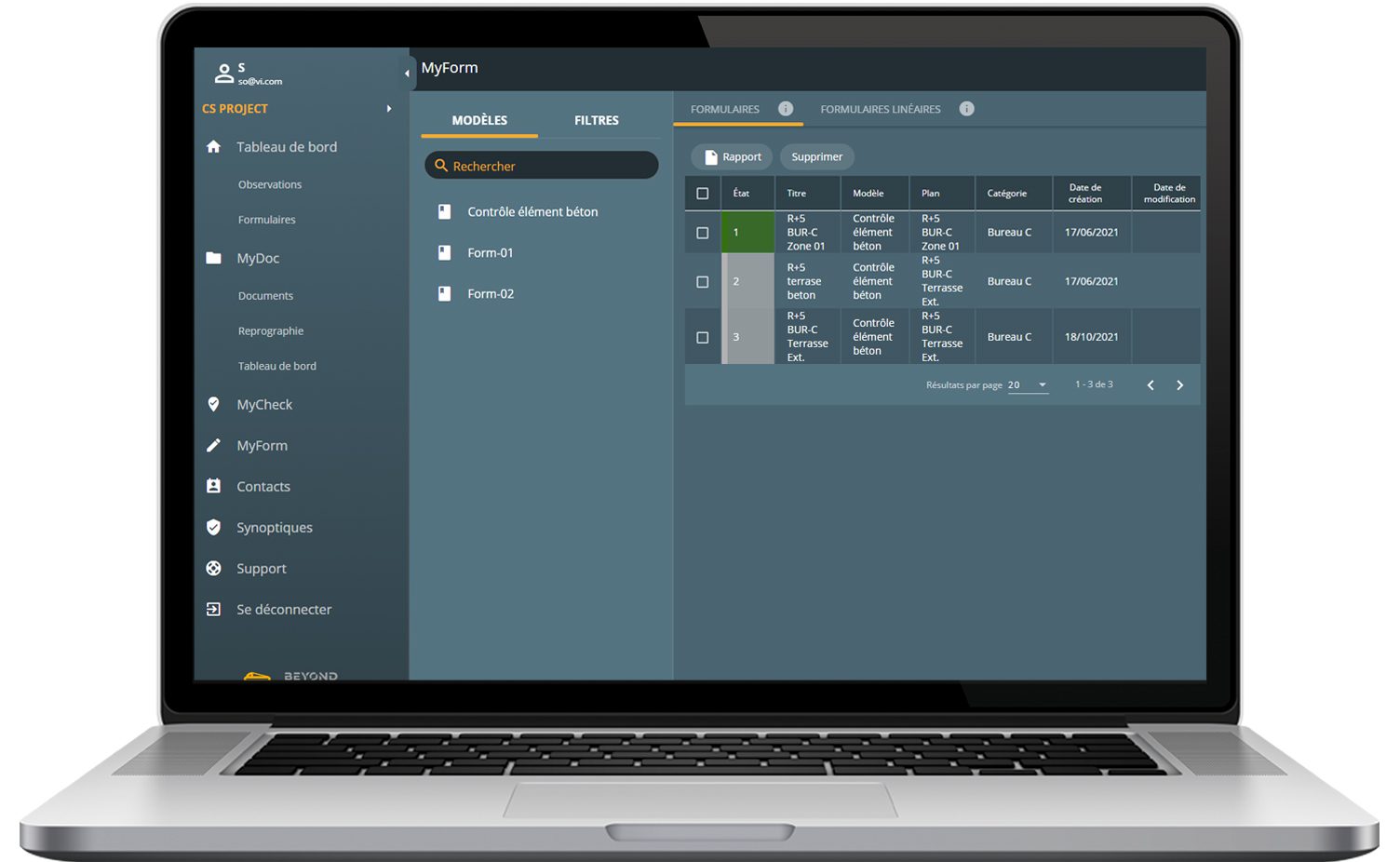 • D’abord le suivi de l’avancement des phases de construction et d’autocontrôle des ouvrages, des visites de sécurité et d’autres événements (MyForm).